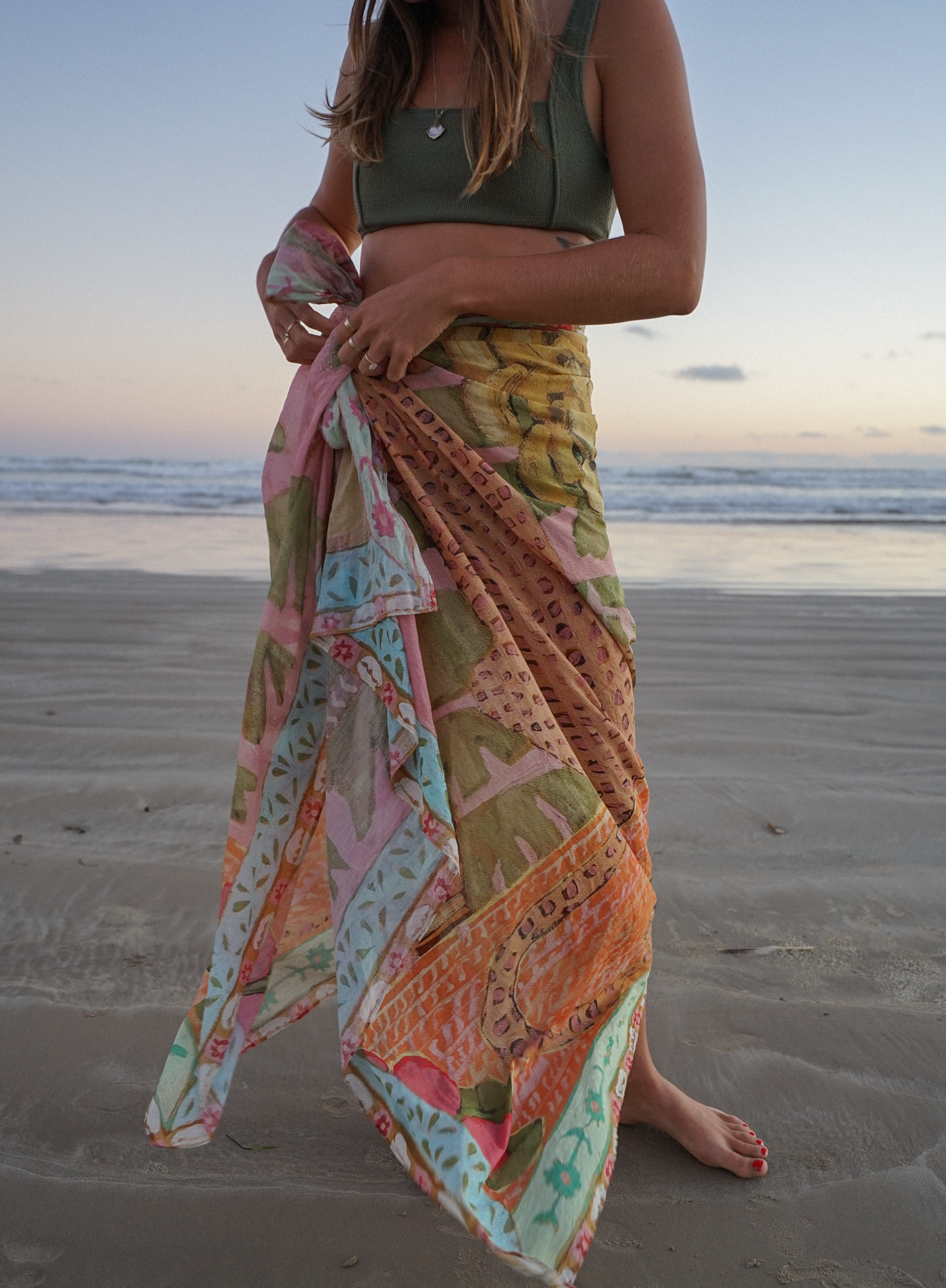 A generous size to maximise ways to style. Fold in half for a short skirt, or get creative and turn into a top, dress, skirt and more.