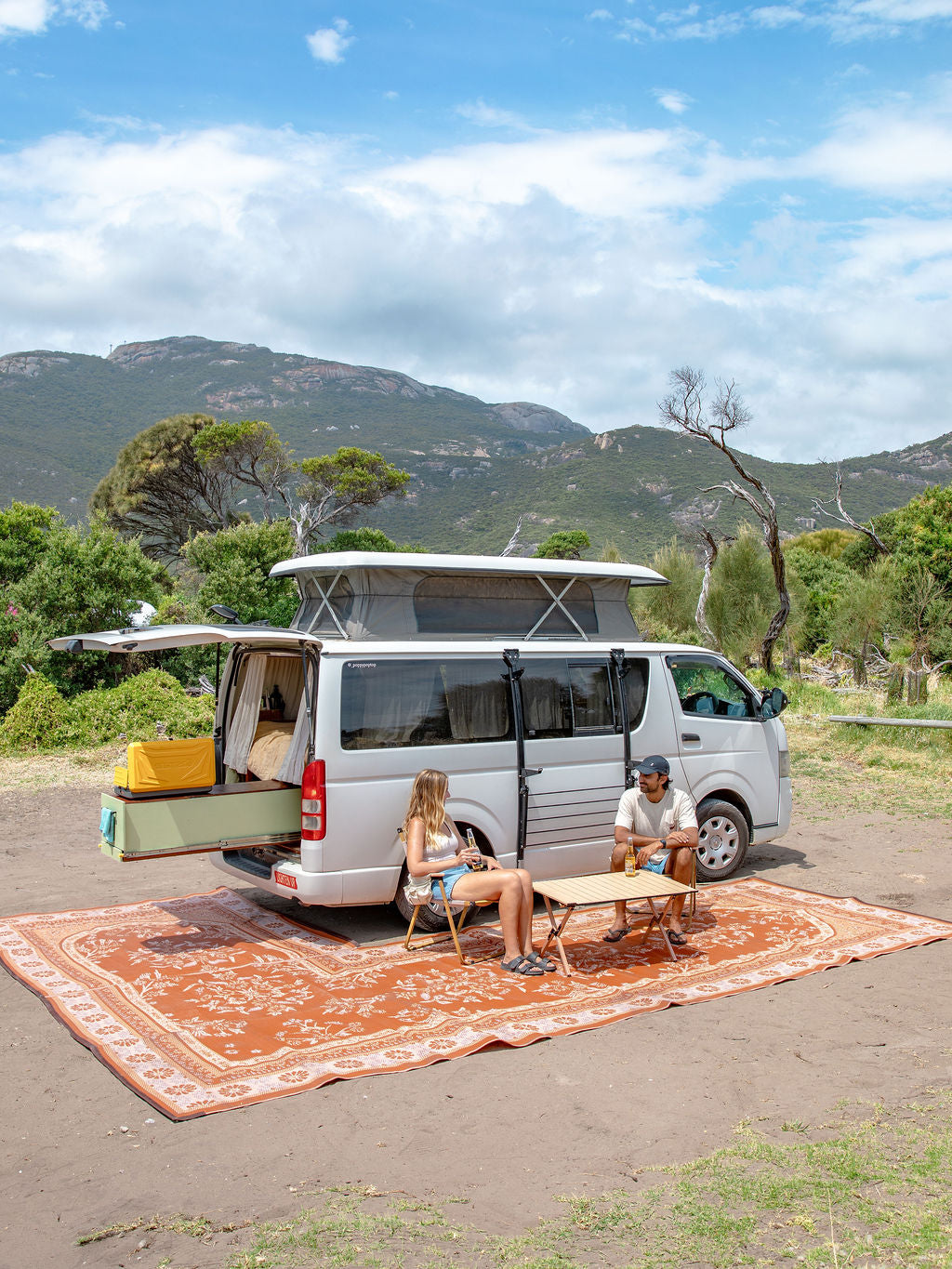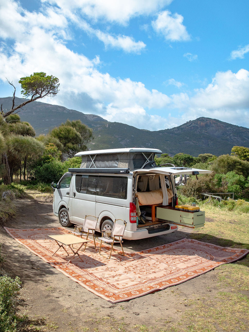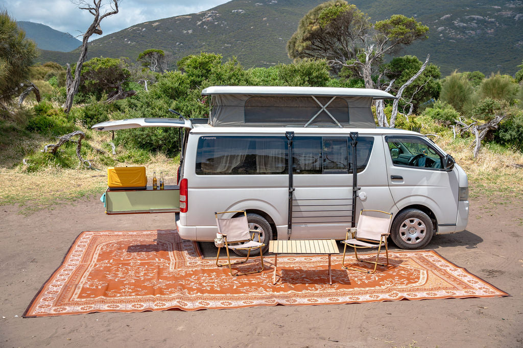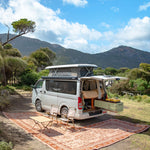 Loved by thousands over the past 6 years, our 100% recycled throw rugs were the first of its kind. Back in 2018 we designed the first boho throw in Australia with nice earthy colours, and had the idea to use them at the beach and on more adventures, not just at home. Since then, they have become a staple item for every Roadtrip, with thousands of travellers using them daily. With over 40 unique design being made.