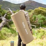 Please only use camping chairs/tables on the mat if you're on a hard surface. Using them on soft unsupported surfaces like squishy grass or soft sand can result in the legs puncturing through the mat.